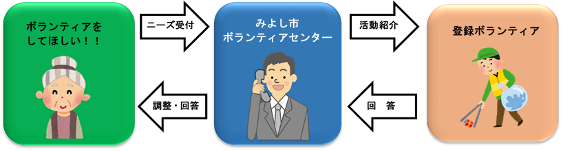 ボランティアに興味のある方、活動に参加してみたい方、ぜひ、みよし市社会福祉協議会各窓口までご相談下さい。